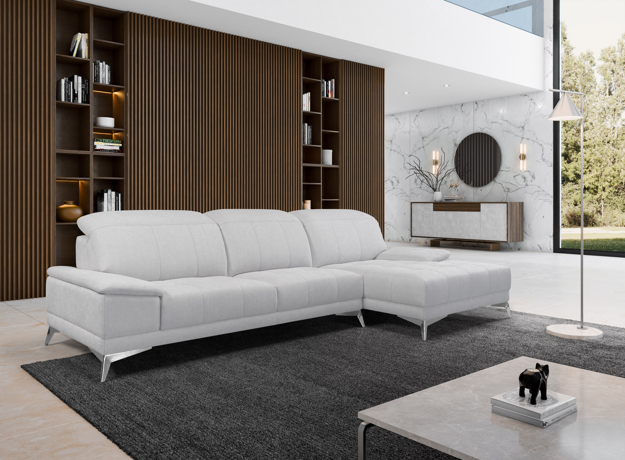 The Enzo Sofa with Chaise longue is the epitome of comfort and style. Upholstered in light grey, it offers a cosy place to relax thanks to JLeal’s meticulous attention to detail. What’s more, you can personalise the look by choosing between black or silver legs, for example. This sofa is the perfect setting for moments of relaxation and elegance in your living room.