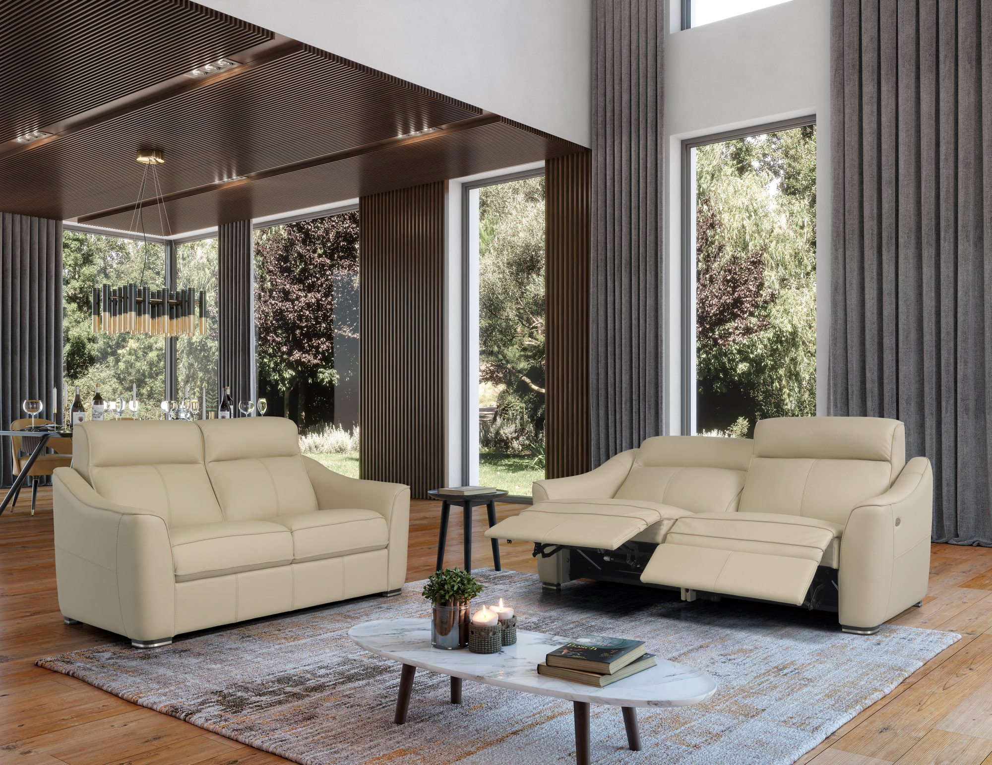 O Sofá Berlina é uma peça de sofisticação em bege, projetada para conforto e estilo. Com espaço para dois lugares, oferece aconchego e elegância. Além disso, a possibilidade de adicionar um sistema relax permite que as pessoas estiquem as pernas e desfrutem do máximo conforto. Este sofá é o complemento perfeito para criar uma sala acolhedora e relaxante na sua casa.